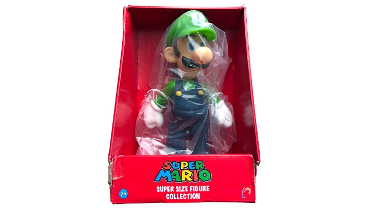 Super Mario Super Size Figure Luigi. Nieuw en ongeopend in beschadigde verpakking.